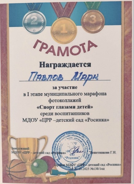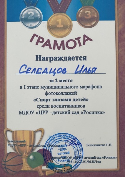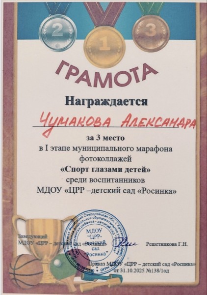 Сегодня прошло торжественное награждение наших ребят, принявших участие в конкурсе фотоколлажей "Спорт глазами детей".